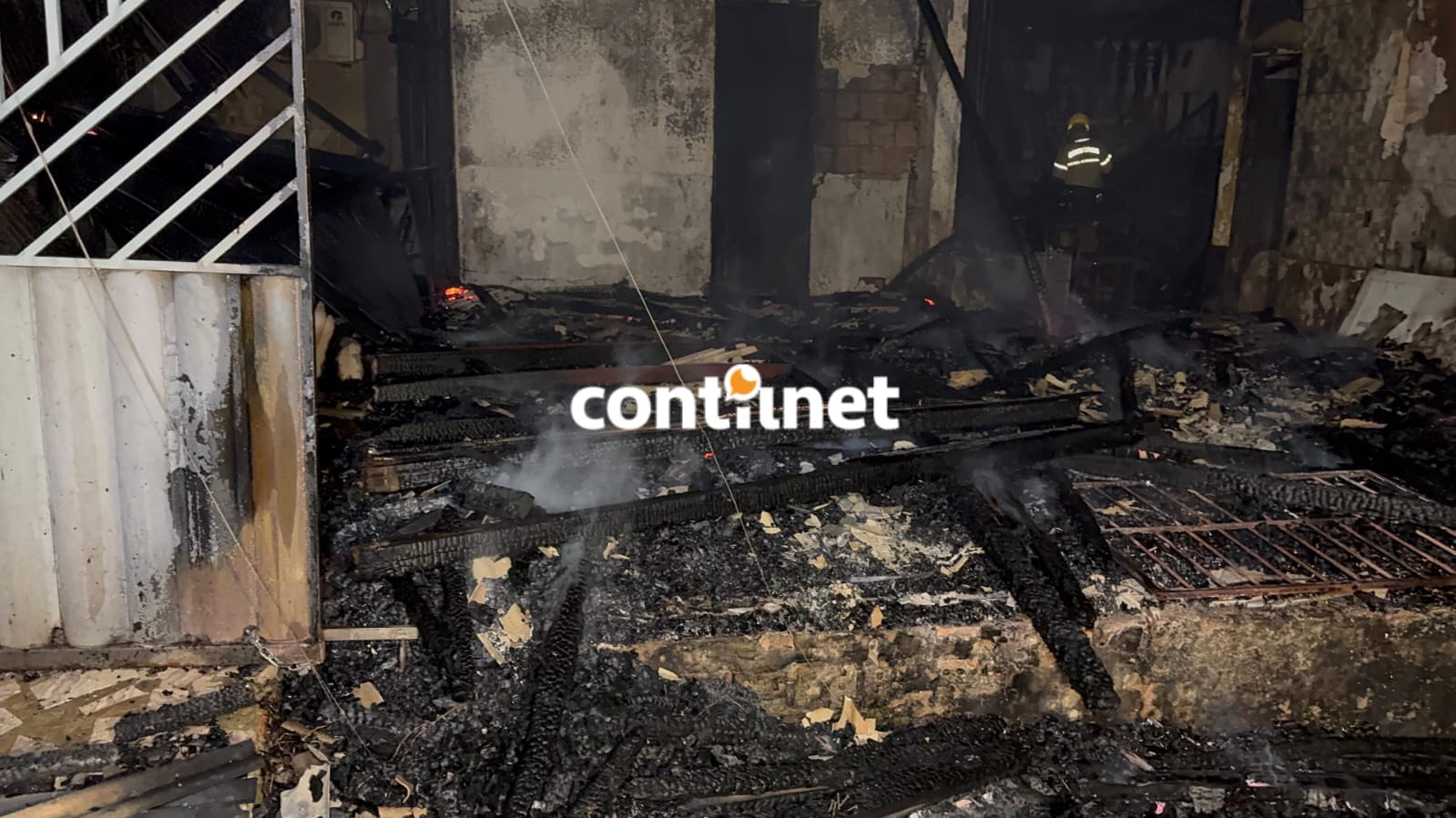 Um incêndio de grandes proporções destruiu totalmente uma residência na madrugada deste domingo (24), na Rua Rio Grande do Sul, bairro Preventório, em Rio Branco.