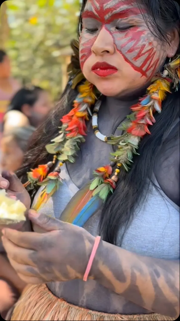 No vídeo, Tashka acompanha o grupo durante a produção da caiçuma, feita a partir da mandioca cozida e fermentada com o uso da saliva humana, prática comum entre diversos povos indígenas da Amazônia. O processo consiste em mastigar a mandioca para ativar enzimas que auxiliam na fermentação, gerando uma bebida de teor alcoólico leve, utilizada em eventos comunitários e rituais tradicionais.
