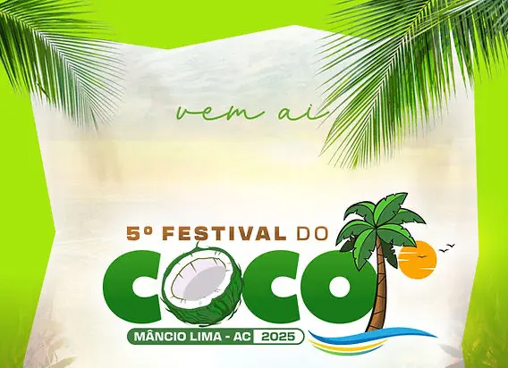 Após dois anos de pausa, Mâncio Lima se prepara para receber a 5ª edição do Festival do Coco e Agricultura Familiar, que acontecerá nos dias 12, 13 e 14 de setembro. O evento retorna ao calendário oficial do município com uma programação diversificada que une cultura, economia e valorização da produção rural local.