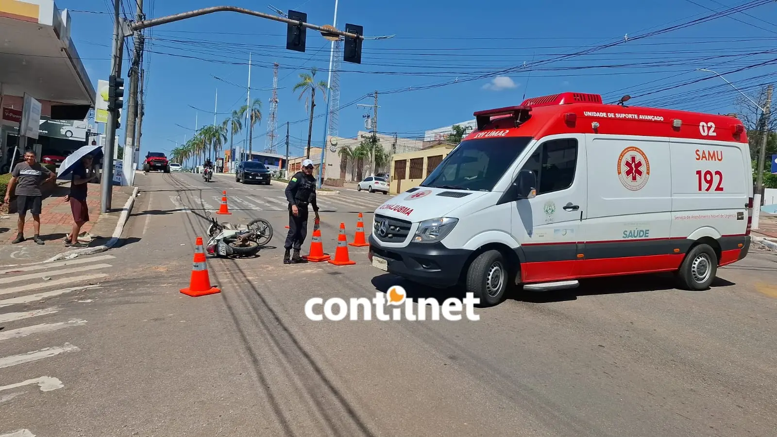 Socorristas do Samu prestam os primeiros atendimentos à motociclista ferida no cruzamento/Foto: ContilNet