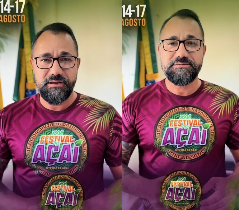 O prefeito de Feijó, delegado Railson Ferreira, publicou nesta segunda-feira (4) um vídeo em suas redes sociais para celebrar o lançamento oficial da blusa do Festival do Açaí 2025, tradicional evento do município que este ano acontece de 14 a 17 de agosto.