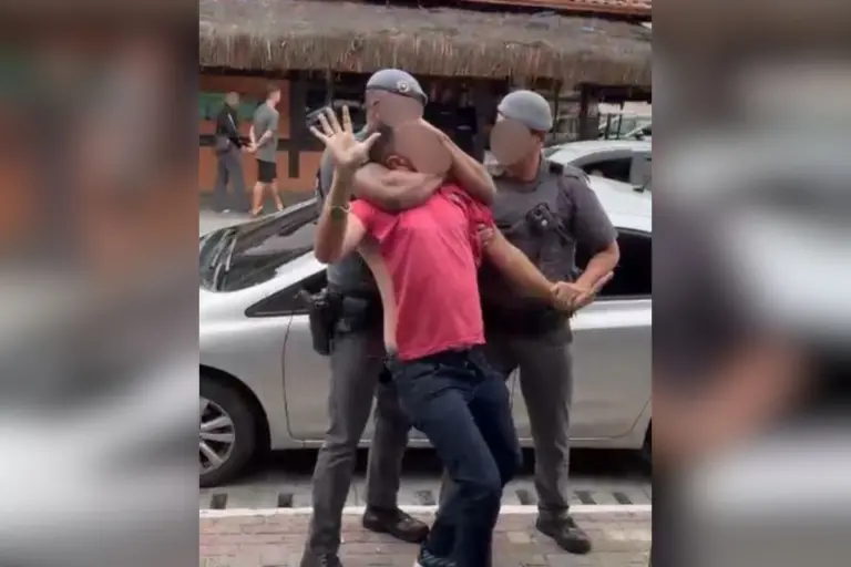 O funcionário de um restaurante no bairro Itaguá, em Ubatuba, no litoral de São Paulo, foi agredido por policiais militares na tarde desse domingo (10/8). Com a camiseta rasgada, em dado momento, o homem recebe um mata-leão de um dos agentes. Segundo a Secretaria da Segurança Pública (SSP), ele teria resistido à abordagem.