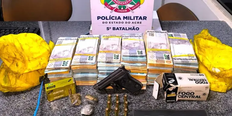 Polícia apreende mais de R$ 200 mil, drogas e arma de fogo em operação na fronteira do Acre