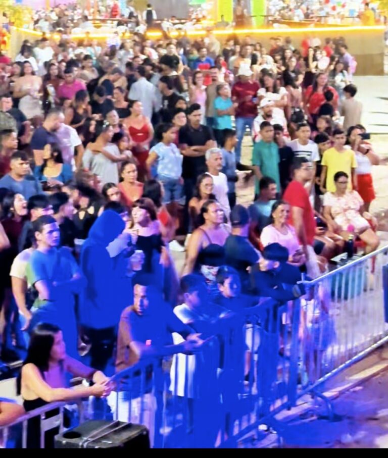 O Complexo Esportivo do bairro Aeroporto Velho, em Cruzeiro do Sul, está completamente lotado na última noite da 8ª edição do Festival da Farinha. O público já se concentra para o aguardado show do cantor Evoney Fernandes, considerado uma das atrações mais esperadas do evento.