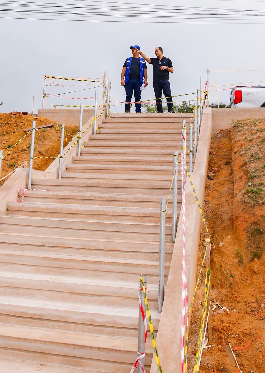 “Estamos realizando melhorias aqui no complexo esportivo que é o nosso principal local de entrenimento e ponto de encontro das pessoas. Aqui vamos realizar o nosso Festival da Farinha. Então, estamos melhorando também o acesso com a construção de escadas”, pontuou.