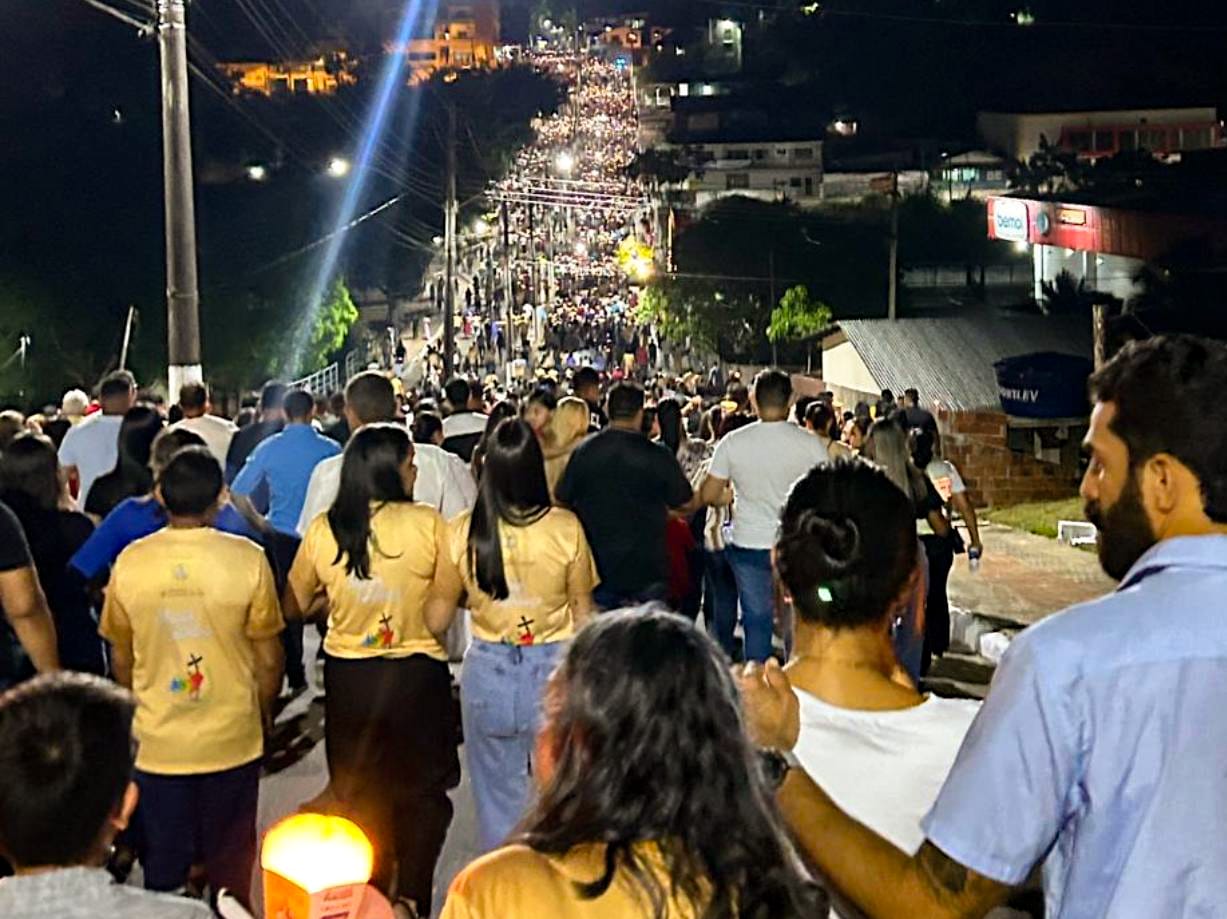 A tradicional procissão de Nossa Senhora da Glória levou uma multidão às ruas de Cruzeiro do Sul nesta sexta-feira (15). O cortejo percorreu cerca de dois quilômetros, encerrando a programação do Novenário em homenagem à padroeira do município.