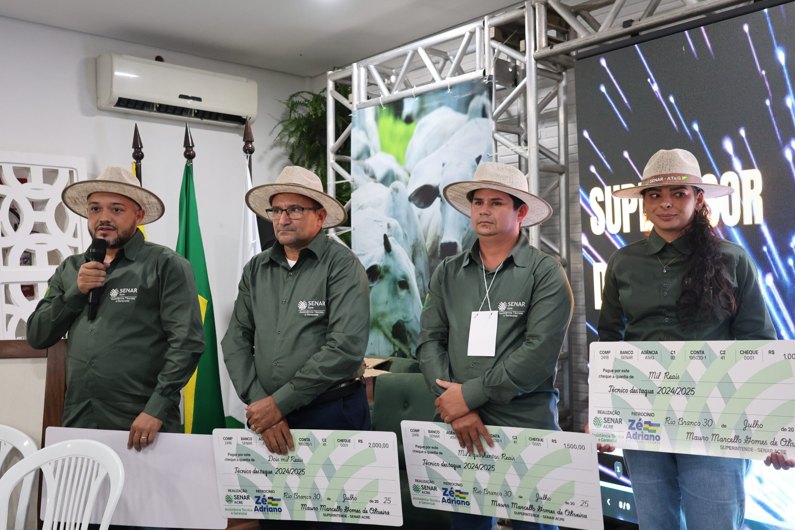 Além deles, o supervisor Valcermyr Teodoro também foi homenageado e premiado pela sua atuação de excelência à frente da função de supervisor. “Esse reconhecimento é mais do que merecido. A gente sabe dos desafios da atuação no campo, e é por isso que fazemos questão de valorizar o trabalho comprometido e transformador dos nossos técnicos e supervisores”, destacou Stefanye Torres, coordenadora estadual da ATeG pelo Senar Acre.