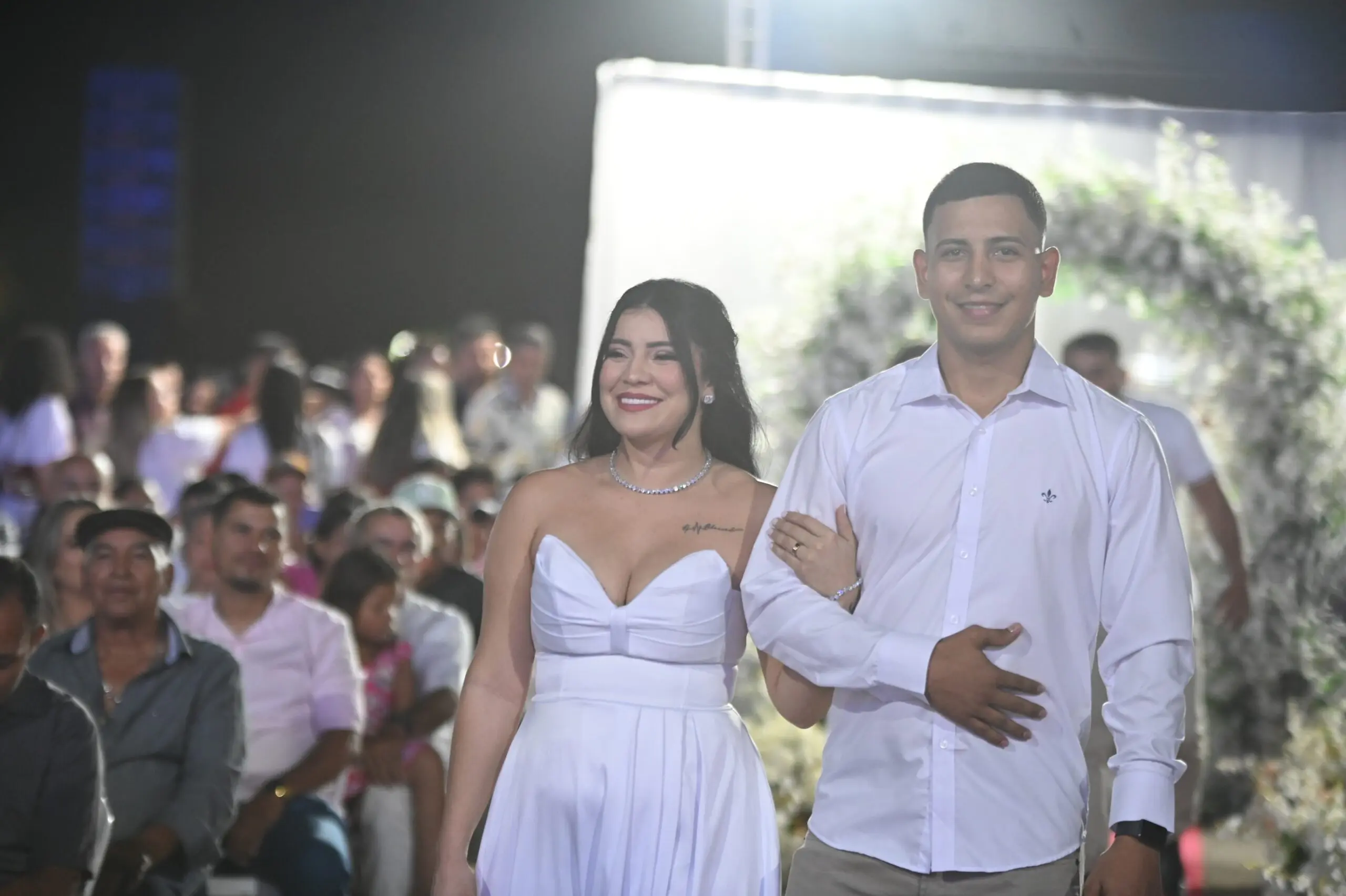A 8ª noite da ExpoAcre 2025 ficou marcada por um dos momentos mais emocionantes da feira: o casamento coletivo promovido pelo Projeto Cidadão, que neste ano celebra 30 anos de atuação no Acre. Ao todo, 382 casais oficializaram a união em uma cerimônia gratuita e repleta de simbolismo, realizada no parque de exposições Wildy Viana, neste sábado (2).
