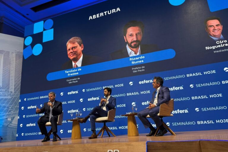 Tarcísio participa do evento Esfera Brasil na manhã desta segunda-feira (25/8). Durante uma mesa mediada pelo presidente do Progressistas, Ciro Nogueira, o governador disse: “A Argentina tem operado hoje com nove ministérios, imagina a quantidade de cortes que eles conseguiram fazer e isso foi importante para impulsionar a administração pública. Dá para cortar sem perder a qualidade”.