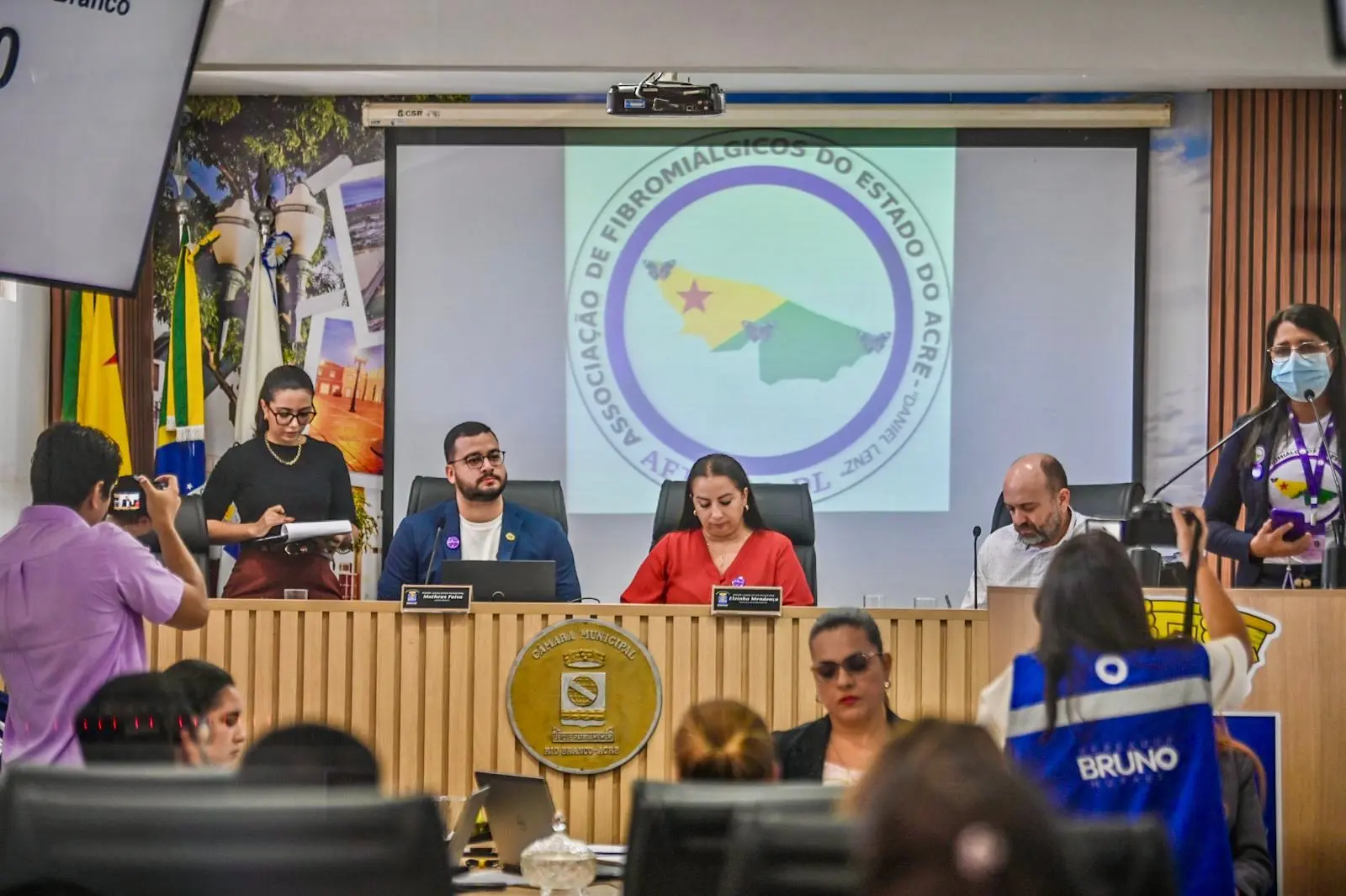 Na manhã desta sexta-feira, 15 de agosto, a Câmara Municipal de Rio Branco sediou uma audiência pública de iniciativa do vereador Matheus Paiva, com o objetivo de debater políticas públicas voltadas às pessoas com fibromialgia. O evento contou com a presença de representantes da sociedade civil, especialistas na área da saúde, membros de associações de pacientes e autoridades municipais.