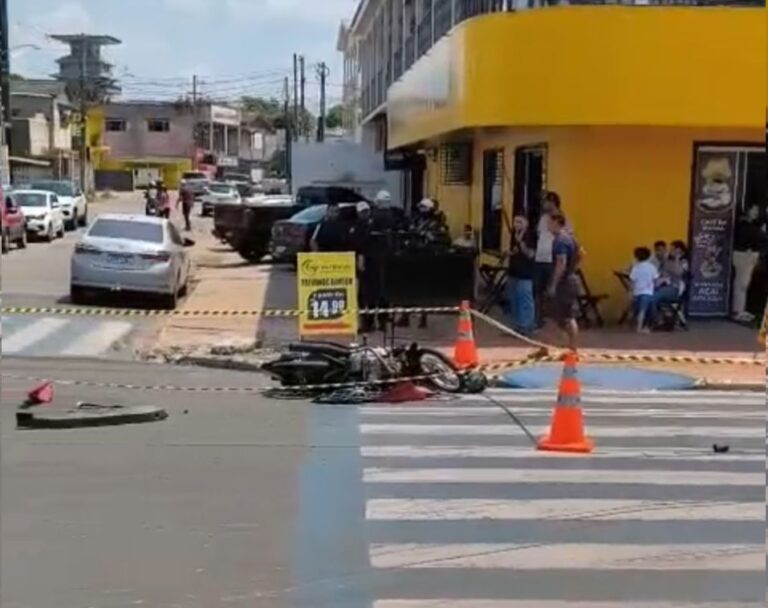 Acidente de moto destrói veículo no bairro Bosque, em Rio Branco. Foto: Reprodução