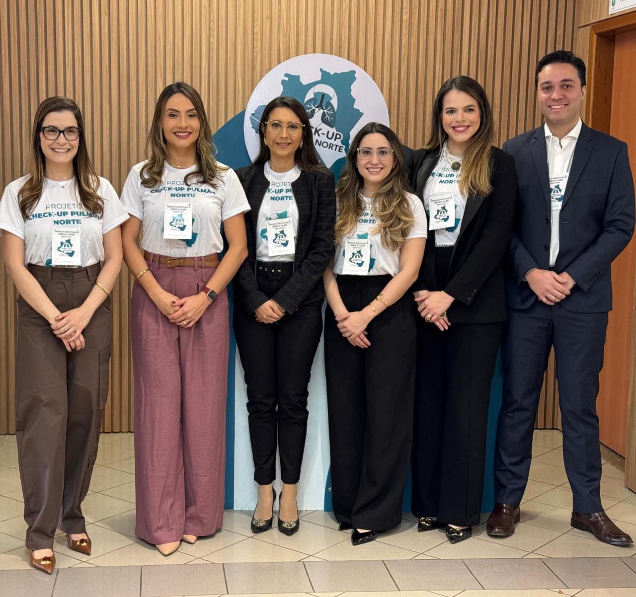 No dia 30 de agosto, foi realizado o 1º Simpósio de Conscientização sobre o Câncer de Pulmão, uma iniciativa do projeto Checkup Pulmão Norte. O evento reuniu profissionais da saúde, estudantes e a comunidade em geral, com o objetivo de promover informação, prevenção e diagnóstico precoce da doença. Com palestras, debates e troca de experiências, o simpósio marcou um importante passo na luta contra o câncer de pulmão na região, reforçando a importância do cuidado com a saúde respiratória. Na fotos os médicos palestrante Aline Câmara, Lívia Bessa, Rita Pereira, Juliana Resende, Izabela Patriota e Reinaldo Moraes.
