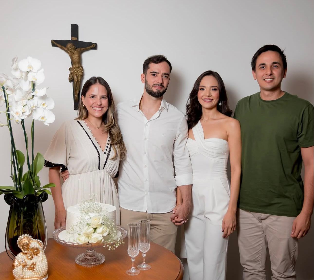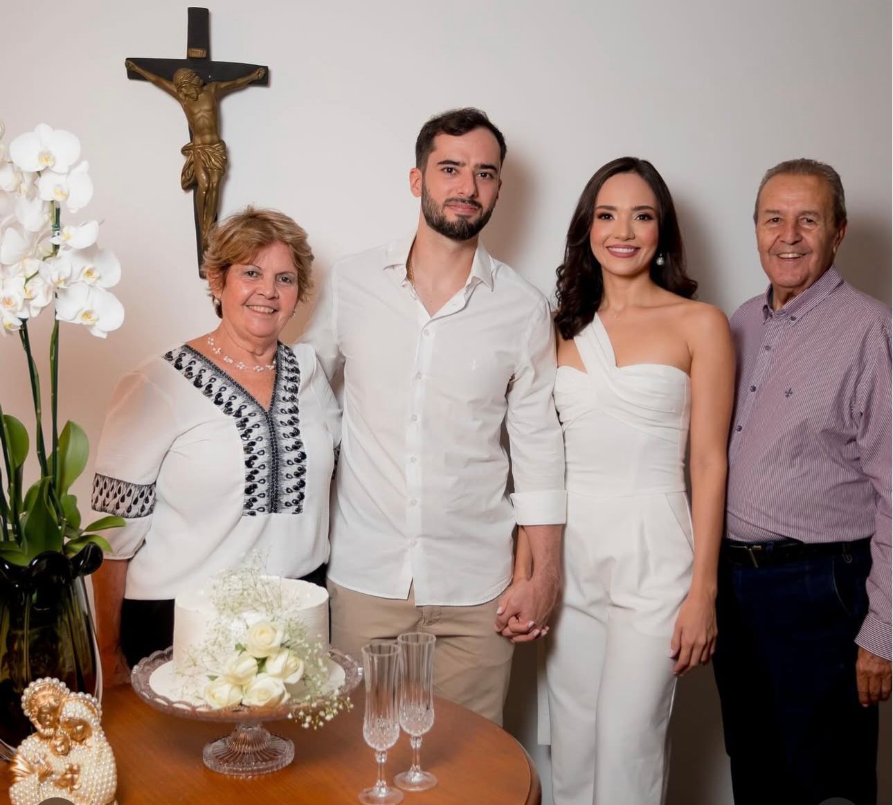 Os enamorados Penélope Costa e Rodrigo Borges deram um passo marcante em sua história de amor: nesta terça-feira, 19 de setembro, Rodrigo surpreendeu Penélope com um emocionante pedido de casamento. O momento especial foi celebrado ao lado de familiares queridos, que testemunharam com alegria esse novo capítulo na vida do casal. Para tornar a ocasião ainda mais significativa, Padre Jorge esteve presente e conduziu a bênção das alianças, emocionando a todos com suas palavras inspiradoras e cheias de fé. Confira alguns cliques desse dia inesquecível: