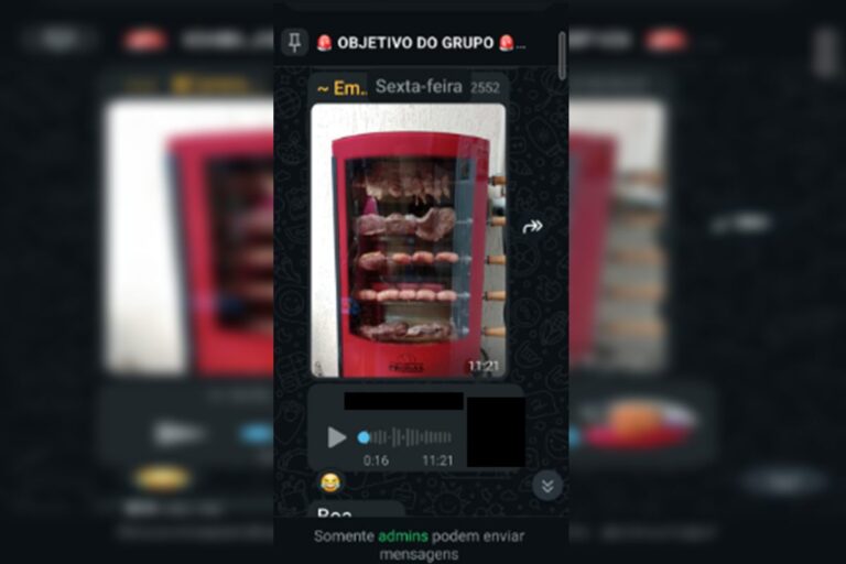 Em seguida, uma moradora sugere que a comemoração fique para o dia seguinte por uma questão de logística. O grupo lança então uma listinha do que cada um vai levar. Por fim, como mostra a mensagem do contato identificado apenas como “Deus é Fiel” fica estabelecido um lanche comemorativo, com bolo, suco e pastel. A ideia é que o churrasco seja feito após os moradores “ganharem a guerra”, conforme consta nos textos. Veja: