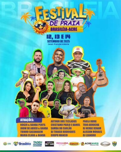 A diversão e a tradição estão de volta! Nos dias 12, 13 e 14 de setembro de 2025, a cidade de Brasiléia será palco do tão aguardado Festival de Praia, que retorna à sua versão histórica, agora realizado na Praia do Izidório, antigo balneário conhecido como Praia do Adolfo.