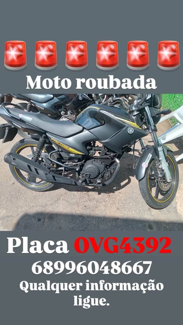 Informações que possam ajudar a localizar a moto podem ser repassadas pelo contato (68) 99604-8667. O apoio da população é considerado fundamental para agilizar a recuperação do bem e o andamento das investigações.