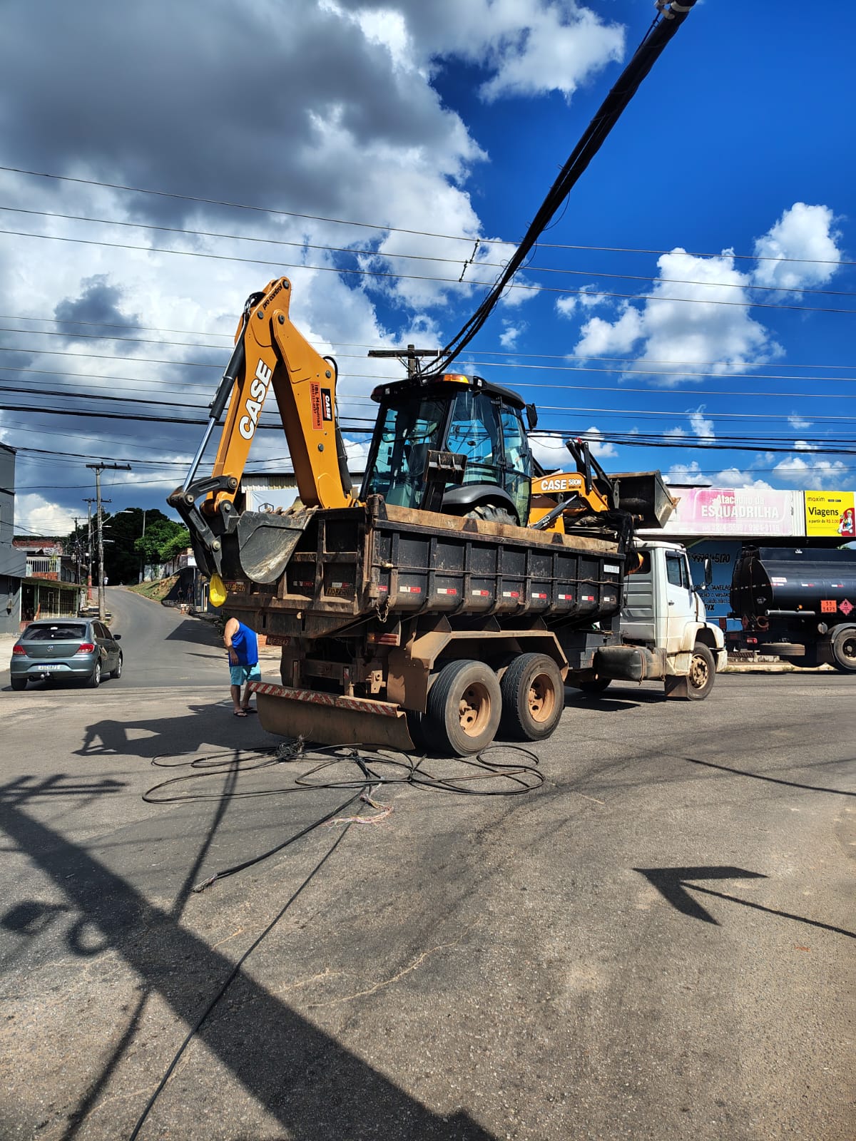 O incidente ocorreu em frente à Escola Heloísa Mourão Marques, próximo à ladeira do Bola Preta. Por conta da altura da carga, os fios foram atingidos e acabaram caindo.