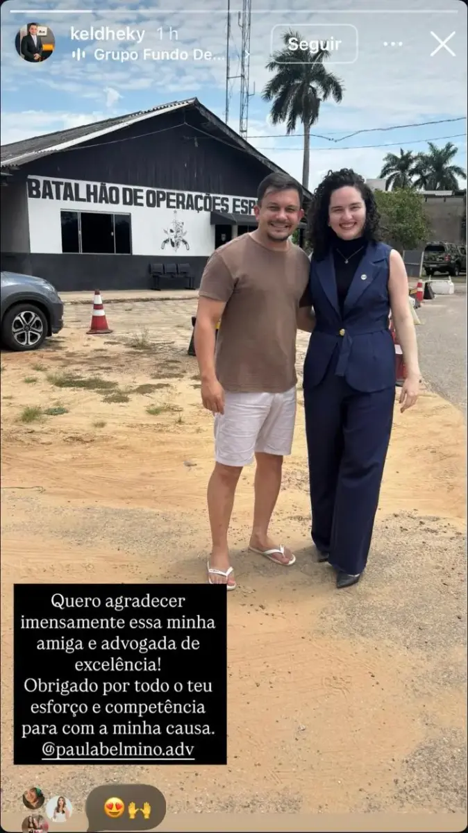Na primeira publicação após a soltura, ele destacou a atuação de sua defensora, a advogada Paula Belmino: