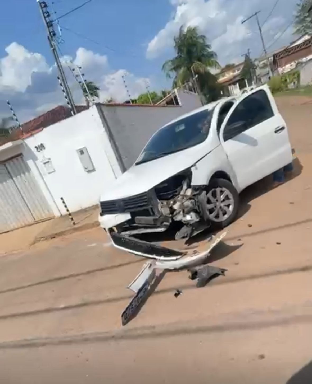 Mesmo com a parte dianteira do carro tendo ficado bastante danificada, ainda não há informações sobre feridos até o momento.