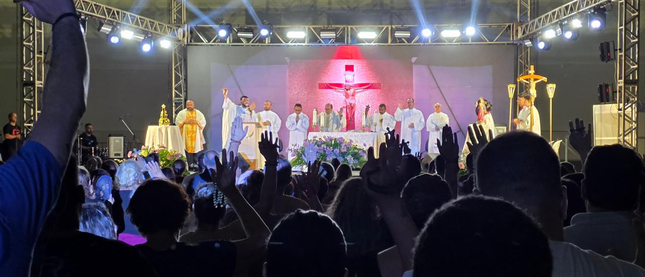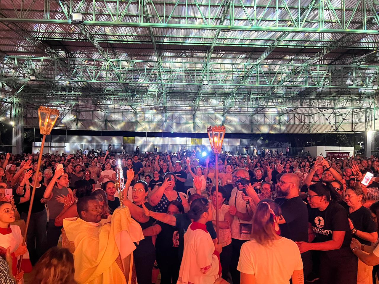 O encerramento do 8º Cerco de Jericó – Dá-me Tua Graça, da Paróquia São Peregrino, foi realizado nesta quinta-feira, 18, no Ginásio do Sesc Bosque. A organização do evento estima que cerca de 5 mil fiéis participaram do momento de louvor, fé e oração.