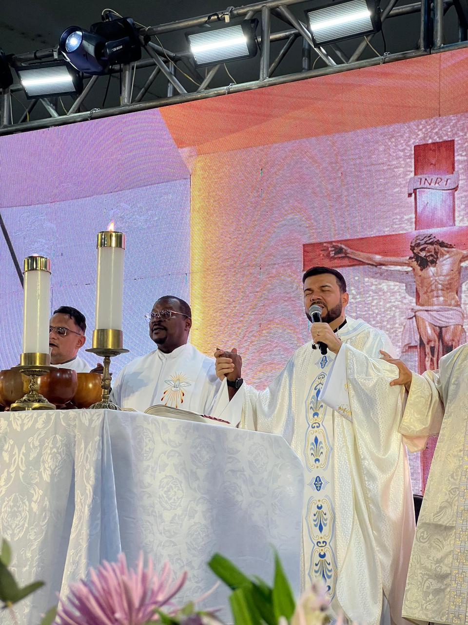 Durante a Santa Missa, Frei Renan, em sua inspirada homilia, proclamou palavras de ousadia e amor. “O Cerco de Jericó quer dizer a você: Deus te ama! E esse amor muda tudo. Talvez você ainda não tenha reconhecido, mas há algo grandioso na sua vida. Estar aqui é uma graça de Deus! Entregue seus planos a Jesus. Sozinhos, não conseguimos, mas com Ele, tudo se transforma. Por isso, consagre tudo ao Senhor e deixe Jesus agir”.
