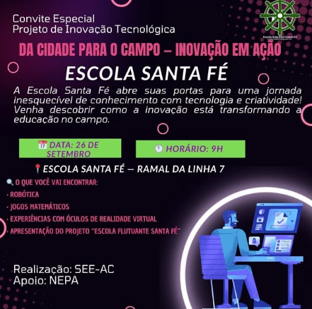 Entre as atividades previstas, os participantes terão acesso a oficinas de robótica, jogos matemáticos e experiências com óculos de realidade virtual. Também haverá a apresentação do projeto “Escola Flutuante Santa Fé”, que busca integrar inovação e educação no campo.