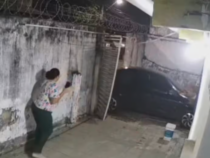 De acordo com as imagens de câmeras de segurança, o criminoso armado abordou os moradores justamente no instante em que entravam na garagem. O motorista da família ainda tentou dar ré para evitar o roubo, mas acabou derrubando o portão da residência.