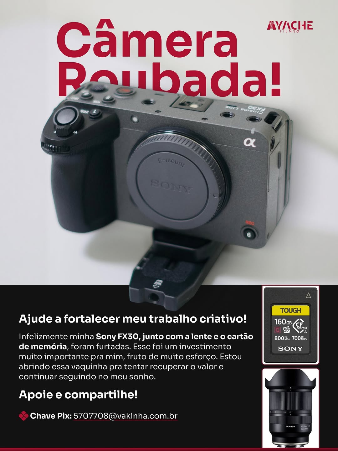 O equipamento, fruto de muito esforço e investimento, era essencial para o desenvolvimento dos projetos audiovisuais realizados por ele. “Minha fé na justiça permanece, mas o meu principal instrumento de trabalho foi tomado de mim. Venho pedir ajuda para reaver o valor investido e poder continuar realizando meu trabalho”, desabafou.
