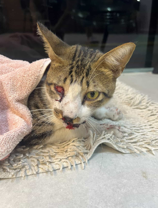 Um gatinho foi atropelado e abandonado à própria sorte, mas recebeu uma chance de sobrevivência graças ao resgate de Ghabriely de Sousa Farias Freitas, voluntária que atua com resgates e doação de animais.