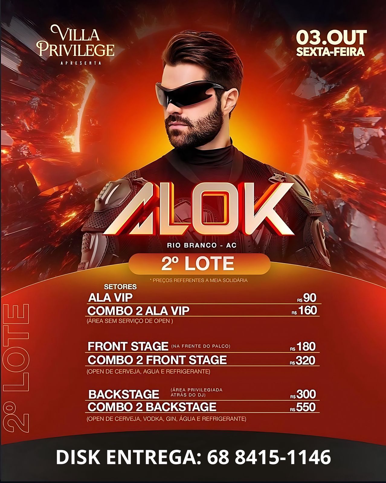 Ingressos físicos para o show do DJ Alok em Rio Branco já estão disponíveis e podem ser comprados pelo WhatsApp (68) 98415-1146 ou com parceiros oficiais/Foto: Reprodução