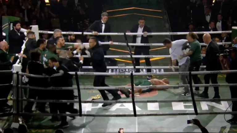 A luta entre Popó e Wanderlei Silva no Spaten Fight Night nesse sábado (27) terminou numa briga generalizada. Membros das duas equipes invadiram o local do combate e começaram a trocar socos.
