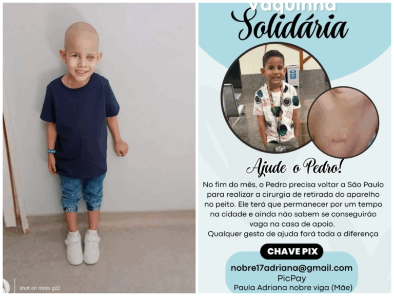 A família do pequeno Pedro, de 4 anos, está mobilizando uma campanha de arrecadação para conseguir recursos que cubram hospedagem, alimentação e transporte em São Paulo. O menino superou um câncer raro no olho e precisa retornar à capital paulista para a retirada de um cateter e exames de acompanhamento.