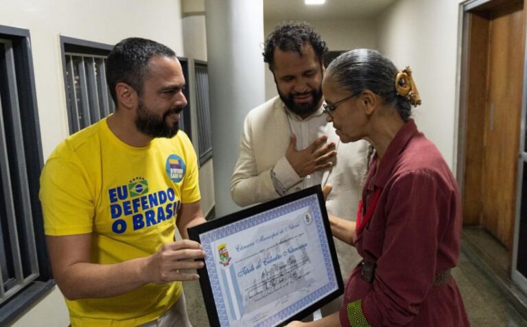 A ministra do Meio Ambiente, Marina Silva, foi homenageada na última sexta-feira (12) com o título de cidadã niteroiense. A honraria foi entregue pelo vereador Professor Túlio, em sessão realizada na cidade de Niterói, no Rio de Janeiro.