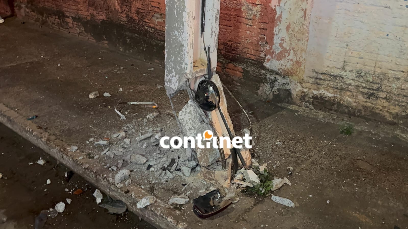 Com o impacto, o jovem quebrou a estrutura, que ficou com ferros expostos e prestes a cair. Ele recebeu ajuda de amigos e populares que passavam pelo local