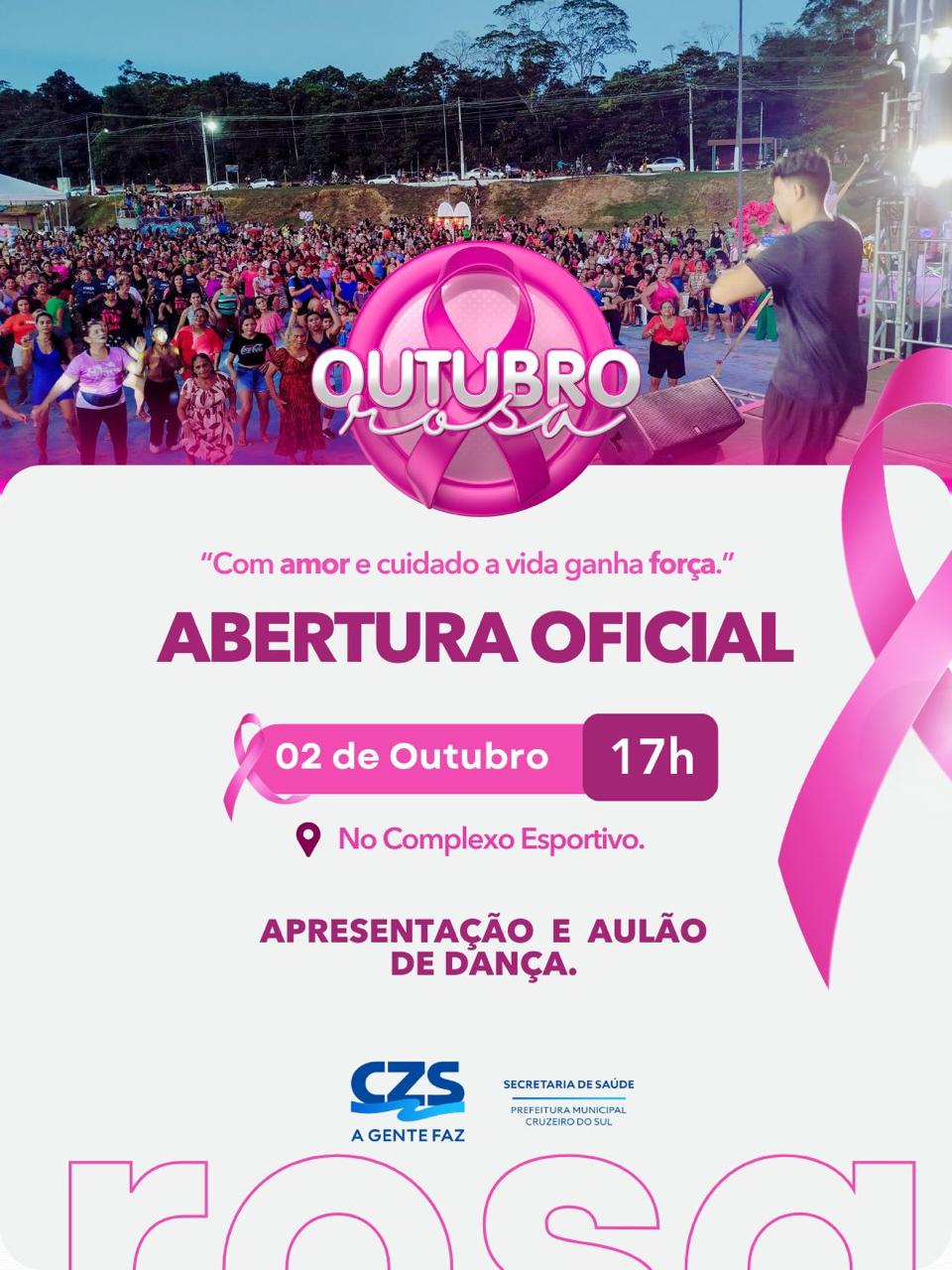 Com o tema “Com amor e cuidado, a vida ganha força”, a prefeitura de Cruzeiro do Sul, por meio da Secretaria Municipal de Saúde,vai abrir sexta-feira, 2, a Campanha Outubro Rosa 2025, movimento mundial de conscientização e prevenção ao câncer de mama. O evento terá início 17h30 no Complexo Esportivo do Aeroporto Velho.