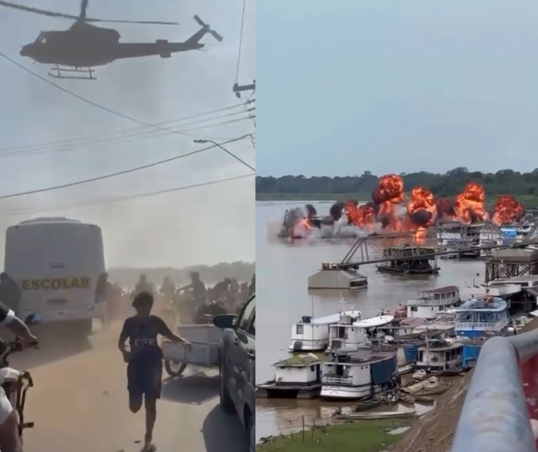 Durante a ofensiva, diversas dragas utilizadas na extração irregular foram destruídas. Nas redes sociais, moradores compartilharam imagens que mostram helicópteros sobrevoando áreas próximas a residências e explosões de embarcações, evidenciando a intensidade da ação.