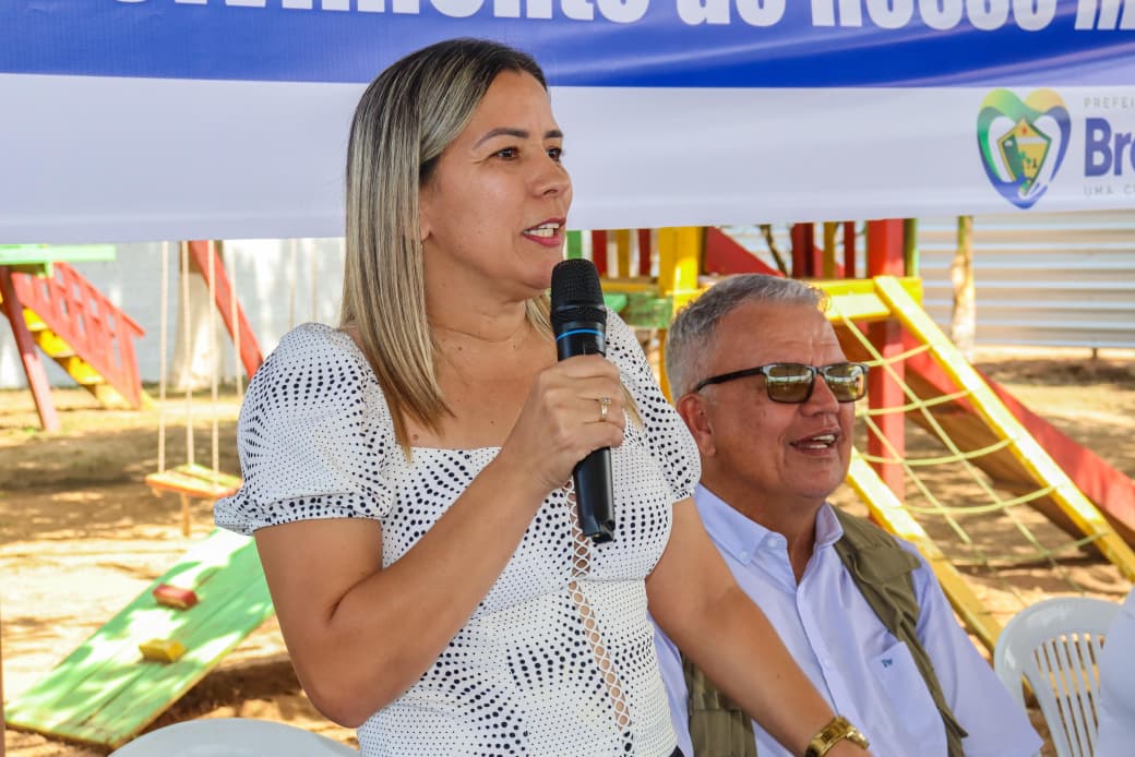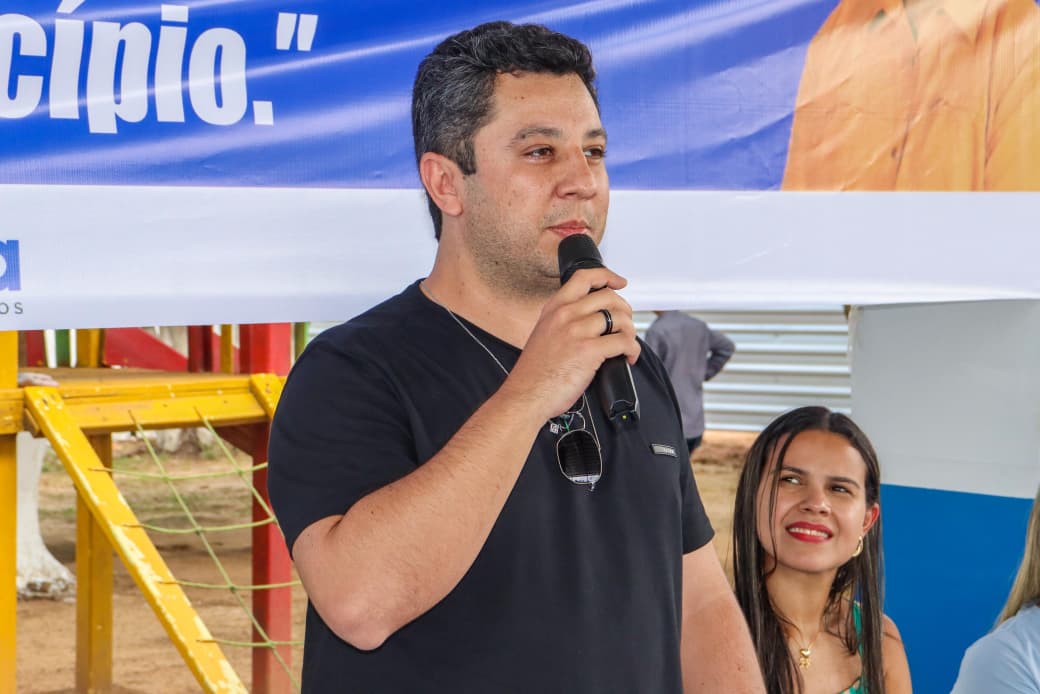 O prefeito Carlinhos do Pelado e o senador Sérgio Petecão destacam a importância do investimento de R$ 384 mil para a educação e lazer das crianças da comunidade/Foto: Ascom