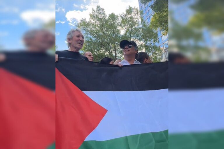 O mandatário esteve em ato pró-Palestina na sexta e, ao lado do cantor britânico Roger Waters, ex-Pink Floyd (foto em destaque), pediu para militares desobedecerem o presidente norte-americano.