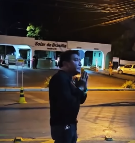 Magno Malta aparece sozinho em oração em frente ao condomínio do ex-presidente Jair Bolsonaro/Foto: Reprodução