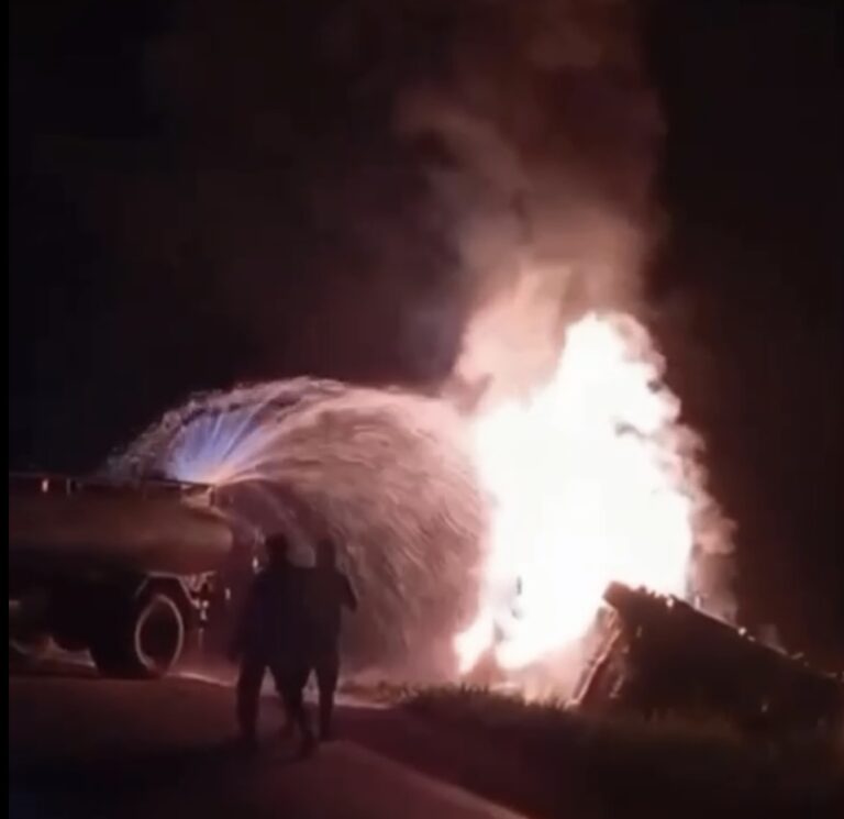 Vídeos compartilhados nas redes sociais mostram pessoas da região tentando controlar as chamas, na tentativa de salvar parte da carga e evitar que o fogo se alastrasse ainda mais.