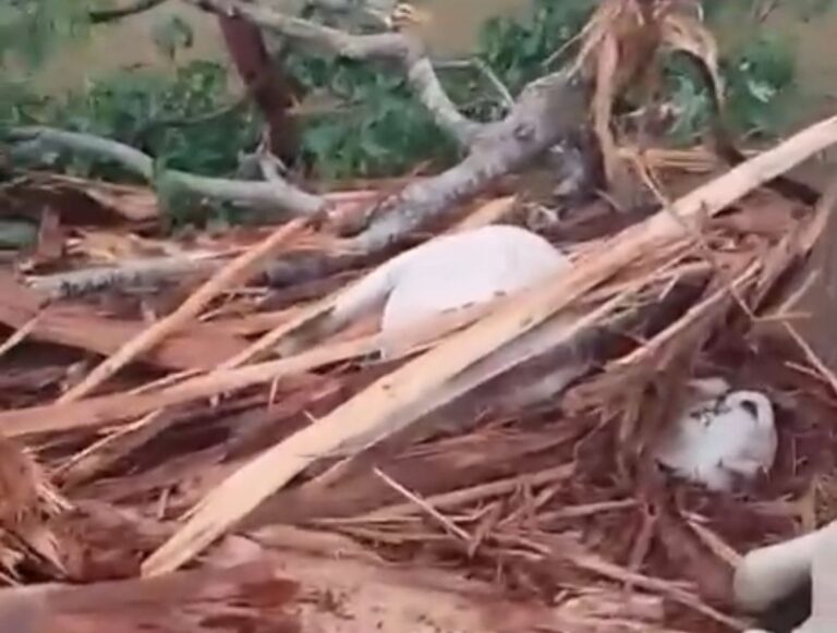 Segundo informações, uma árvore caiu durante a ventania a atingiu o gado, que repousava sob ela. Nas imagens Ă© possĂvel ter dimensĂŁo do incidente.