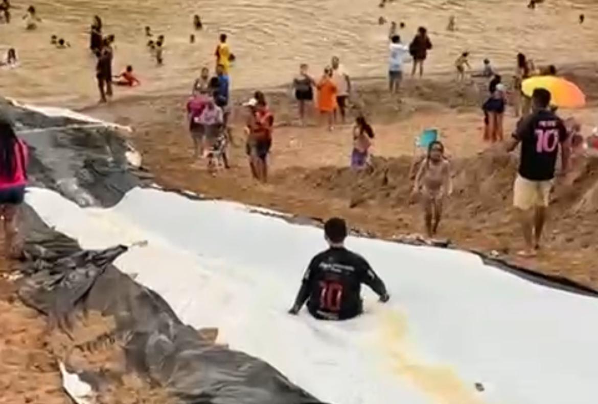 Entre as atrações que conquistaram o público, um destaque inusitado foi o tobogã improvisado na areia, feito com lonas. A estrutura criativa virou sensação entre os participantes, garantindo momentos de pura diversão e rendendo muitas risadas, especialmente entre crianças e jovens.