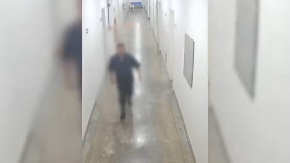 Polícia divulgou vídeo que mostra suspeito no corredor do hospital/Foto: Reprodução/Polícia Civil