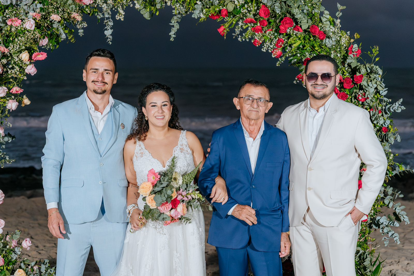 Ohana Aiache e Sam Monteiro com o pai e o irmão do noivo, José Bezerra e Luiz Gustavo Bezerra