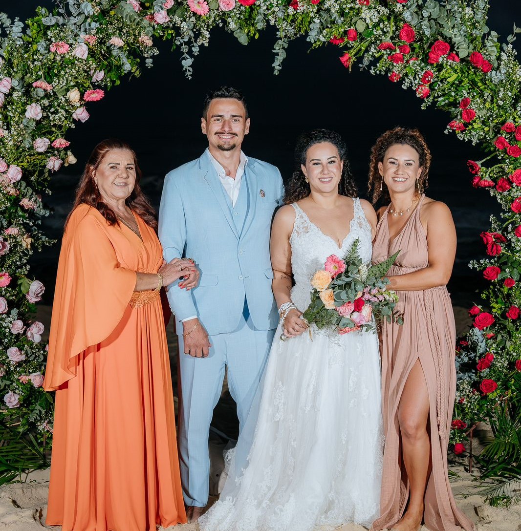 Os recém casados com a mãe e a irmã da noiva, Dínia Aiache e Tiffany Aiache