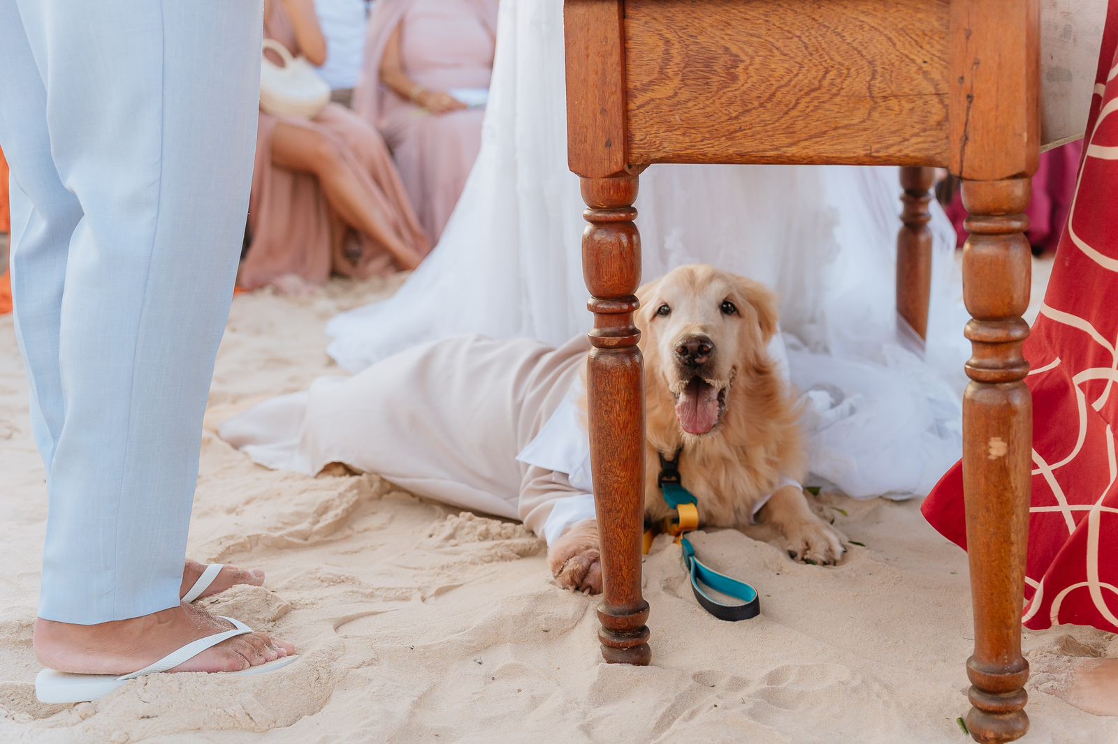 O filho de quatro patas do casal, Zeus, lutou bravamente pra estar presente no dia e entrou com as alianças, encantando os convidados. Cumpriu o seu papel e partiu oito dias após a celebração, aos 11 anos de idade