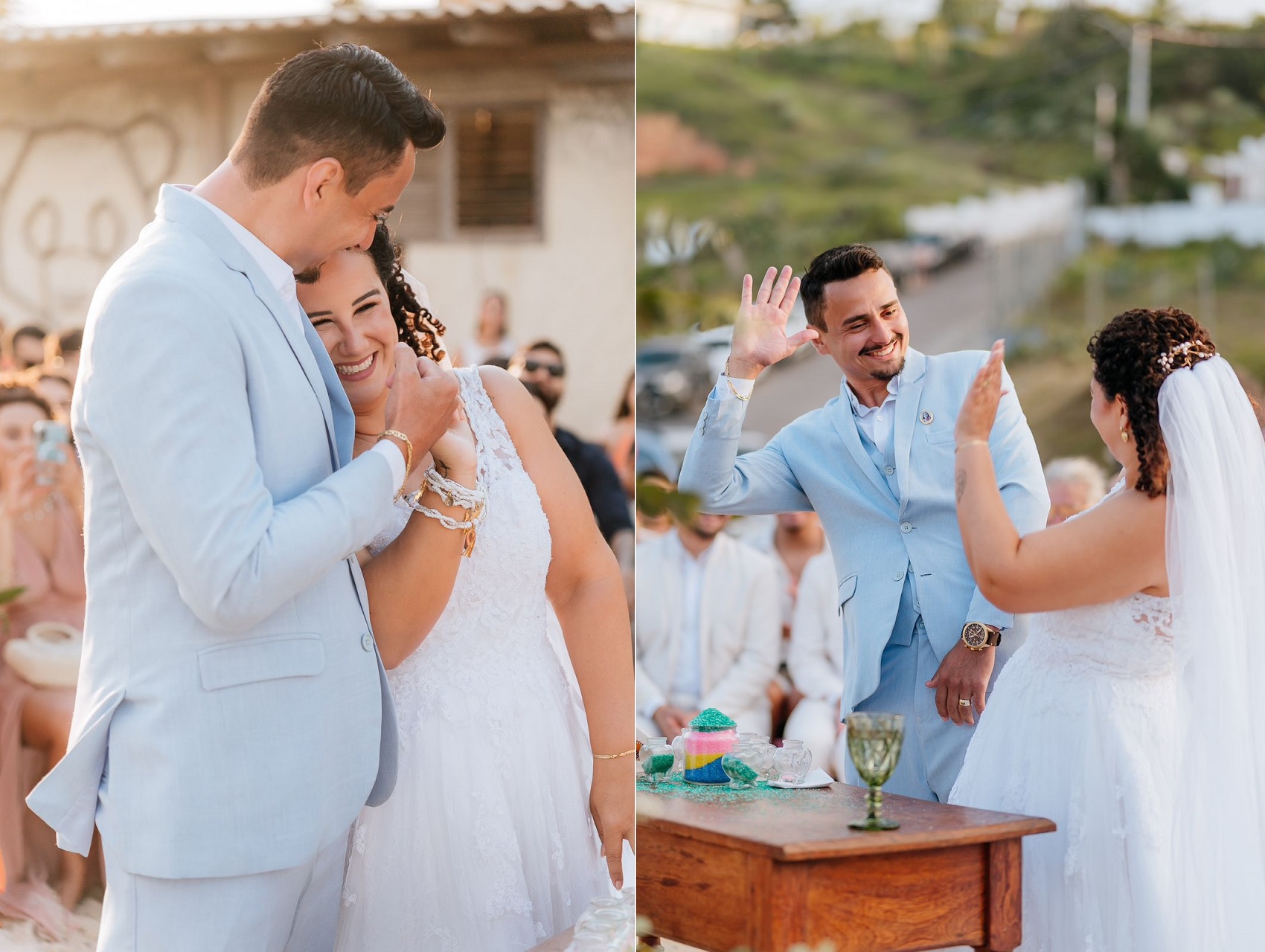 Os noivos Ohana Aiache e Sam Monteiro fizeram o juramento do dedinho, em referência à música deles. A alegria e cumplicidade do casal foi contagiante