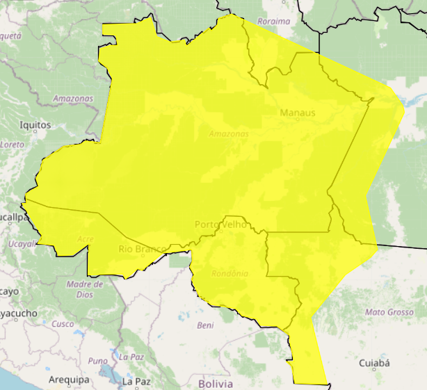 O Instituto Nacional de Meteorologia (INMET) emitiu, nesta segunda-feira (27), um alerta de chuvas intensas com grau de perigo potencial para o Acre. O aviso teve início às 10h05 e segue válido até as 10h de terça-feira (28), abrangendo principalmente a região do Vale do Acre.