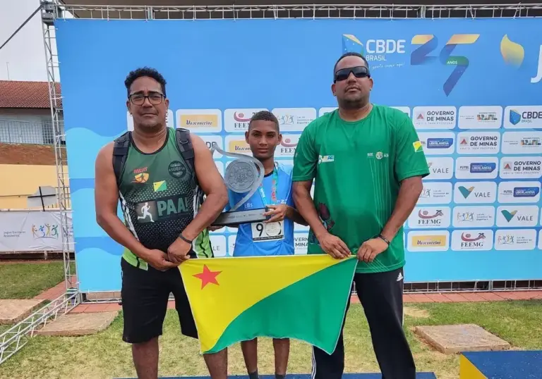 De acordo com informaçÔes do GE-AC, o atleta Luan Breno, da Escola Nova Vida, localizada no municĂpio de Bujari, brilhou mais uma vez ao garantir a medalha de ouro na SĂ©rie Prata do lançamento de dardo, alcançando a marca de 45,56 metros. O jovem jĂĄ havia subido ao pĂłdio anteriormente, com ouro no arremesso de peso pela SĂ©rie Bronze.