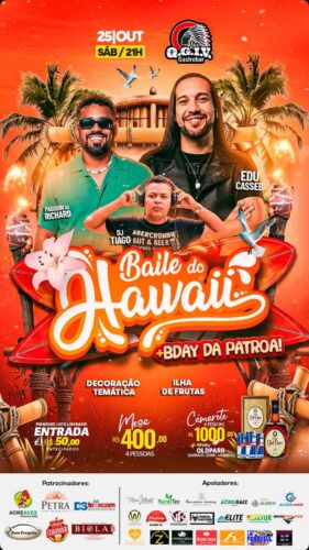 Com o apoio de diversas marcas e patrocinadores, o Baile do Havaí 2025 promete ser o evento mais comentado da temporada, reunindo gente bonita, boa música e aquele clima de festa que só a fronteira sabe proporcionar.